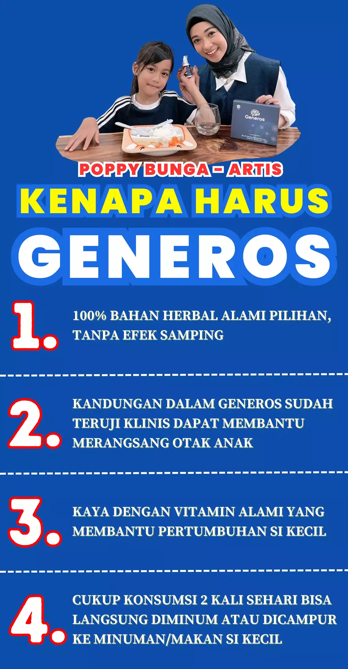 GENEROS DAPAT DIKONSUMSI UNTUK ANAK MINIMAL UMUR 9 BULAN HINGGA 17 TAHUN KE ATAS
